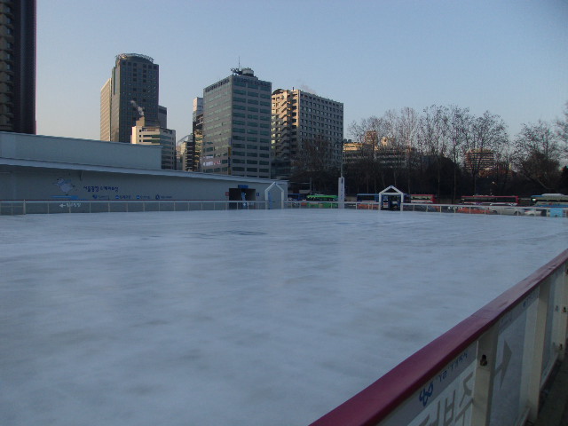 市庁前の広場に冬季に開設されるスケートリンクは、実は数年前にも見たことがあったのですが、今回久し振りに訪れてみて、その整備状況が一層良くなっていることに驚かされました。かつてはもっと野暮ったい感じのチケット売り場があって、行列も出来ていてスタッフの方も大変そうだなあと同情しながら見つめたのですが、今回見てみると、立派なチケット売り場のような建物が造られていて、本当に冬季限定なのかと見紛う程でした。スケートリンク自体の製氷状態も凄く上質に感じられ、この辺りは、やはりスケート競技が強い韓国なので、力の入れようが違うのかなと思わず納得してしまいました。