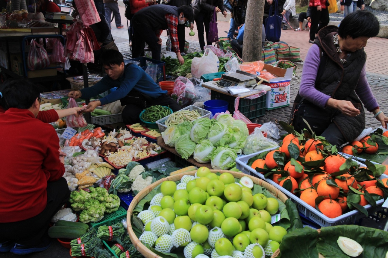 ホテルから近かったので日曜日の朝一番で行きました。MRT雙連のすぐわきの細い道の両側に露店がならびますが、長さも300m位の間隔で規模としてはこじんまりした感じ。土産物のほかに果物や野菜、魚など食材も多く他の夜市に比べると観光客よりも地元の人が多く利用しているようでした。
