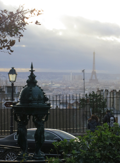ここから見るパリの街並みは、何度見ても素敵です。時間帯によっては逆光になったり、時期によって靄が晴れないこともありますが、それもまた美しい光景です。私はいつもパリの北駅から歩いてサクレ・クール寺院に向かいます。途中、インドやアラブ風の店が立ち並ぶマゼンタ通りや、ちょっと寄り道してアフリカ系の市場が並ぶバルベス通りなどを通ってから行くと、パリのまた違った一面が見れて楽しいです。