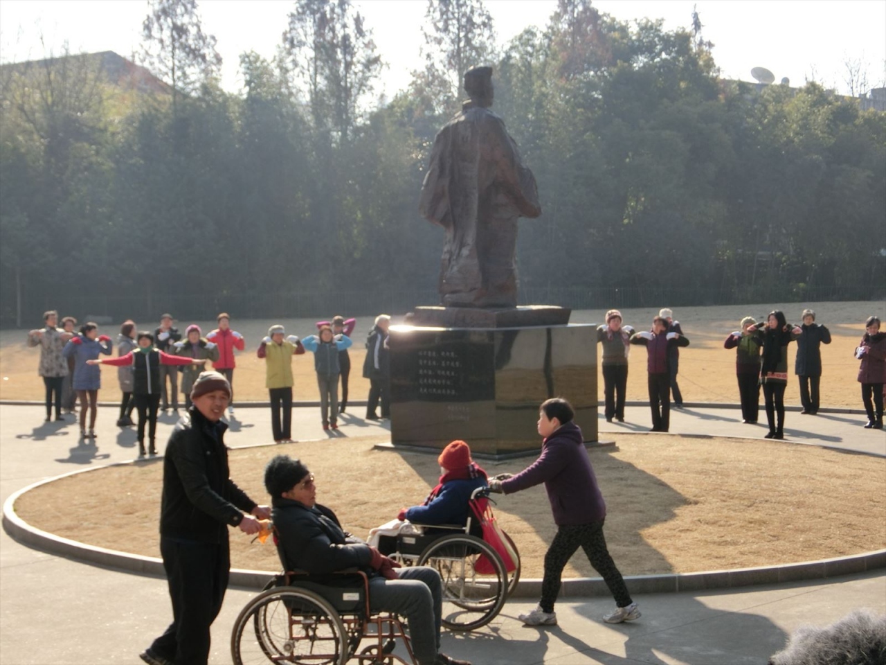 すぐ近くの和平公園と比べて朝のエクササイズが多い、混雑状態。演目も社交ダンスやエアロビクスや太極拳のあれこれと幅広い。魯迅の墓があり、魯迅博物館は日本語ガイドもいるし日本にかかわり深い展示内容が興味深い。付設お土産店が3000元のアクセサリー10点セットで1500元と怪しさ満点。