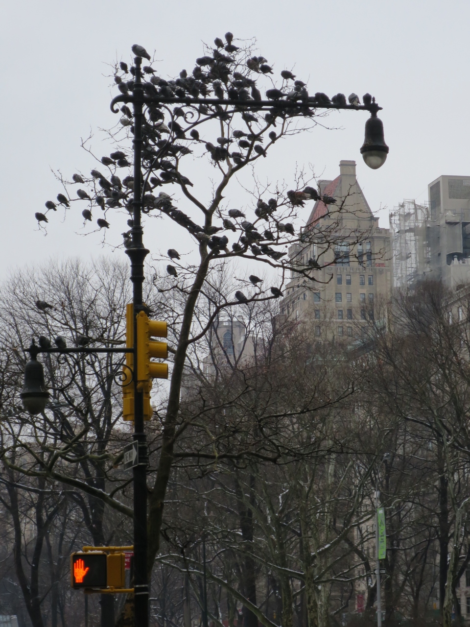 夏なら広々とした緑が都会のオアシスとして気持ち良いのでしょうが、冬は周りのビル風と相まって冷たい風が吹きすさび足早に方をすくんで通り過ぎるしかありませんでした。面白かったのは公園の樹木に鳩が身を寄せ合うようにしてとまっている姿を目の当たりにしたこと程度です。