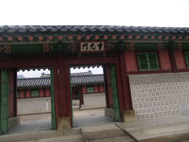 こちらの門は注意していないと見逃してしまうかと思いますが、景福宮でも内宮エリアの東、いわゆる東宮の一つとして存在している資善堂の南側にあります。間に震化門を挟んでいて、メインの内宮エリアとは美成門で繋がっていますが、こちらの門に関しては、完全にメインルートからは外れているので、付近はとても静かな雰囲気で、逆にそれが個人的には良かったです。