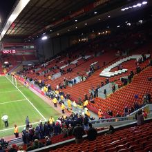 ところが、ひとつ残念だったことは、ハーフタイムに名物(と地元の人から聞きました)のビーフパイを買うためコンコースに出たのですが、あまりに込んでいて、購入できませんでした。ぜひ試合が始まるまでに手に入れて、試合を見ながら食べてください。アルコールはコンコース内のみ可で、席までは持っていけませんでした。