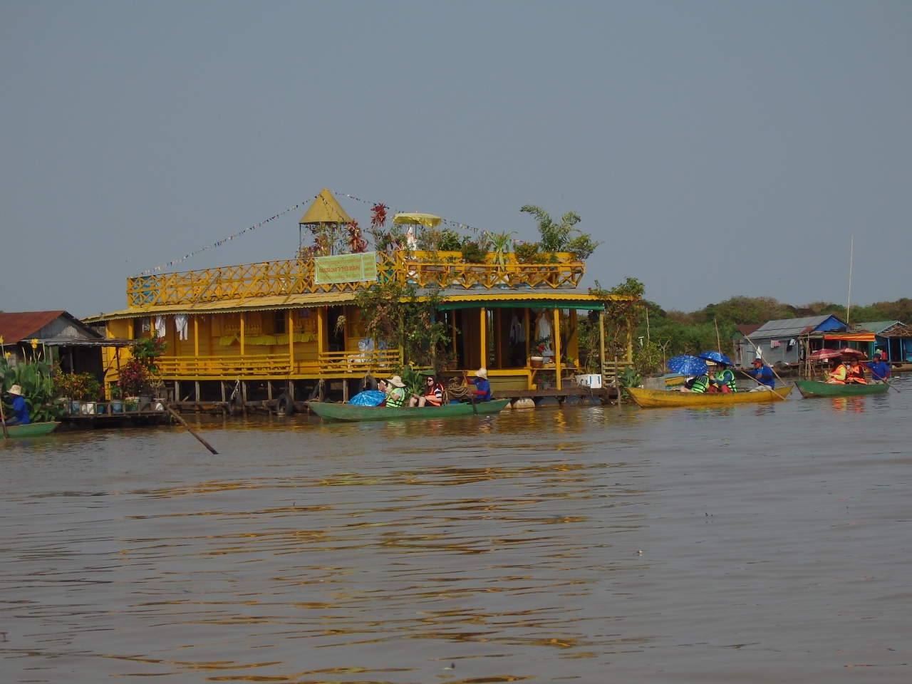 10人乗りくらいの大きさの船に乗り、トンレサップ湖で水上生活を送っている人々の街を見に行きました。