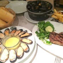 いろんなムール貝がありますが、オススメは生ムール貝!!牡蠣よりクリーミーで美味しいぃ!