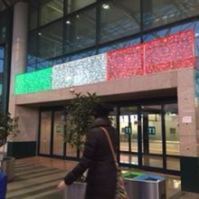 空港に入ると道路脇にレオナルドダ・ヴィンチの像があり、皆を出迎えてくれています。空港内は、クリスマス休暇だったためか、それらしい飾り付けがされていました。また、ツアーで行ったため、搭乗手続きに時間がかかり、待っている間に、子供用のおもちゃ売り場で姪の子供達のお土産などを買えました。
