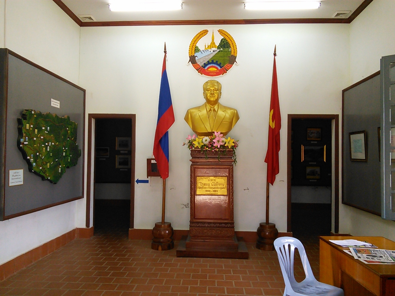 まず入口には金ピカのオッサン像が…、誰?って感じですがこれはラオス初代首相のカイソーン氏。ちなみに彼の息子はサワンナケート県の知事を勤めていました。