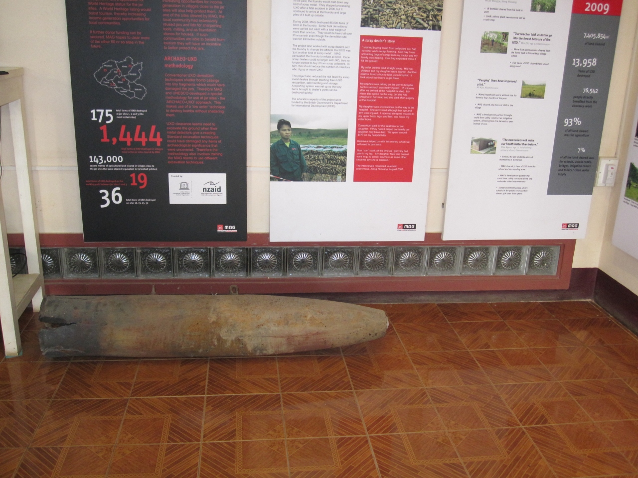 ジャールへ平原でもう一つ注目すべきはベトナム戦争やカンボジア内戦の傷跡でしょう。あまり知られていませんが、ラオスには今での数百万発の地雷が埋められており、毎年多くの地元民が犠牲になっています。ジャール平原にもまだ多くの地雷が残されており、町には爾来を展示した博物館もあります。ここに来ると戦争が現在進行形で続いているのだと実感できます。