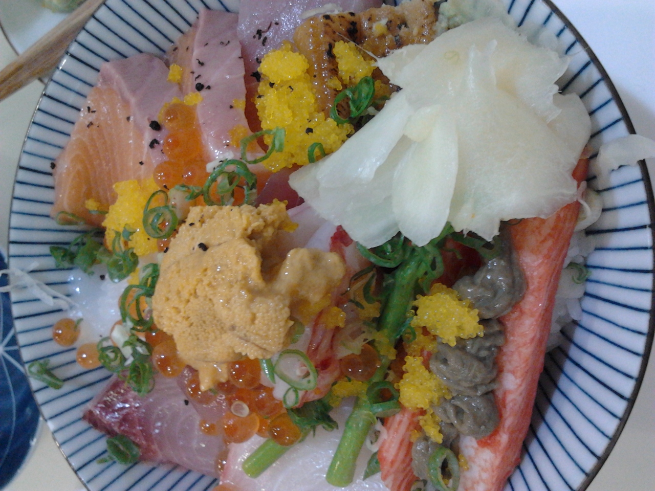 現地の太っている、食べるの大好きな男性に教えてもらいました。現地のブログにものっているらしく、地元の人たちが並んで食べるお店だそうです。バイクで行きました。有名な割にお店の看板もお店自体もそこまで大きくないので、通り過ぎてしまったくらいです。地図の番地を見て行くことをおすすめします。12時まえに着きましたが、大行列。名前と人数を言って、お店を去り、また戻ってくる人が多かったです。自分の番が過ぎたら嫌なので、ずっと店内で待ってましたが、40分くらい立ちました。待ったかいあっての丼!いくらも沢山、新鮮でおいしかった。1階がカウンター席で2階が座卓なのかな?1階のカウンターで食べたので中に4人寿司職人がフル回転で働いているのが見えました。コスパの良さは、並んだかいありです。