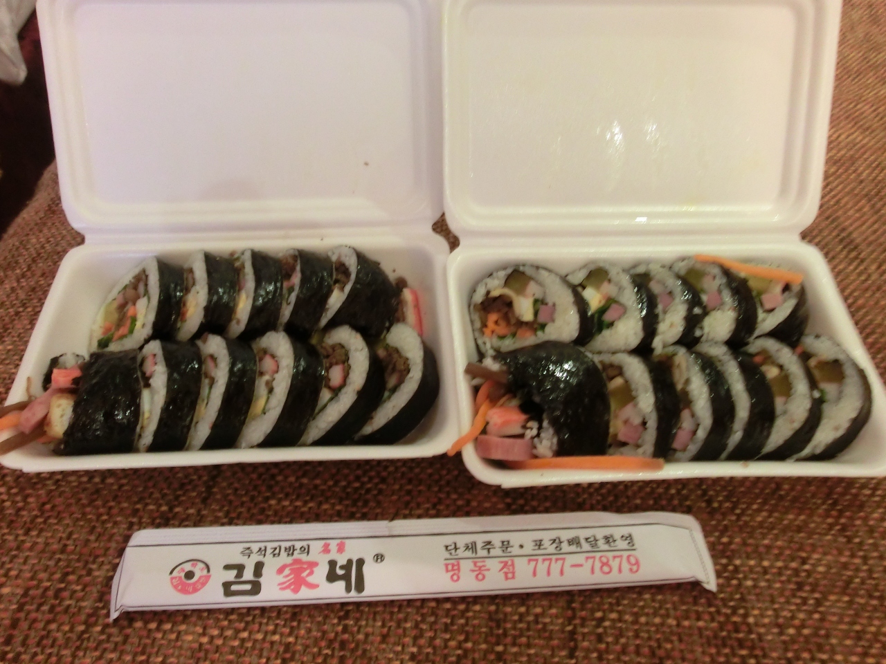 韓国にいくと必ず食べるキムガネキンパ。注文してから、手際よく巻いてくれます。店内で食べたり、テイクアウトにしてホテルで食べたり・・・美味しいです。いろいろ具が入っているのもいいですが、個人的にはオーソドックスなキムガネキンパが一番オススメです☆