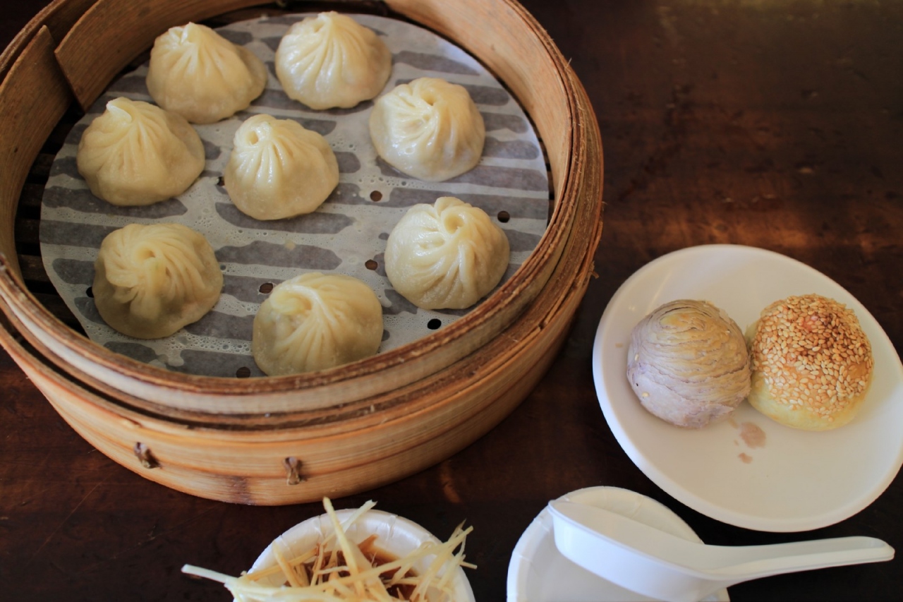 大きなメニュー(写真付き)があり、また人気メニューもわかりやすくなってます。注文は小龍湯包120元、お饅頭2個50元。すぐに出てきましたがはしやレンゲは出てこないのでまわりを見渡すとすぐそばのカウンターにそろっていてファストフードのように自分でもってくるようでした。ちょっと言ってくれてもよさそうですが、常連客が多いのでわかっていると思ったのでしょう。