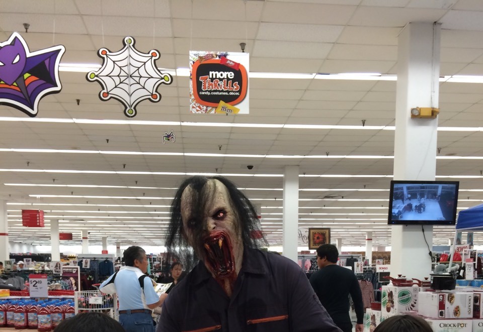 店員もリアルなコスチュームに身を包み、地元の子供達にお菓子を配っていました。