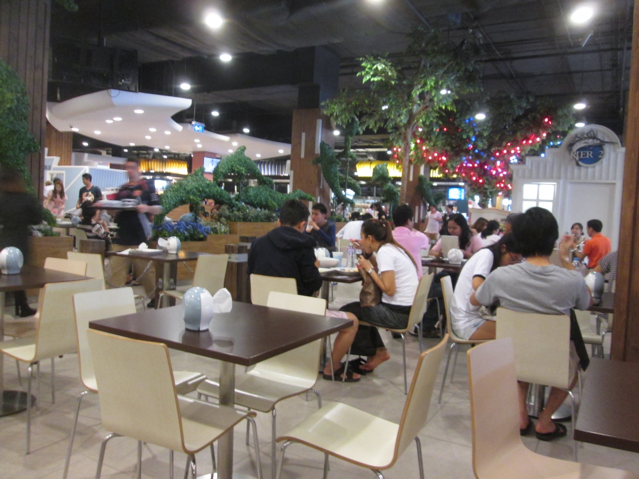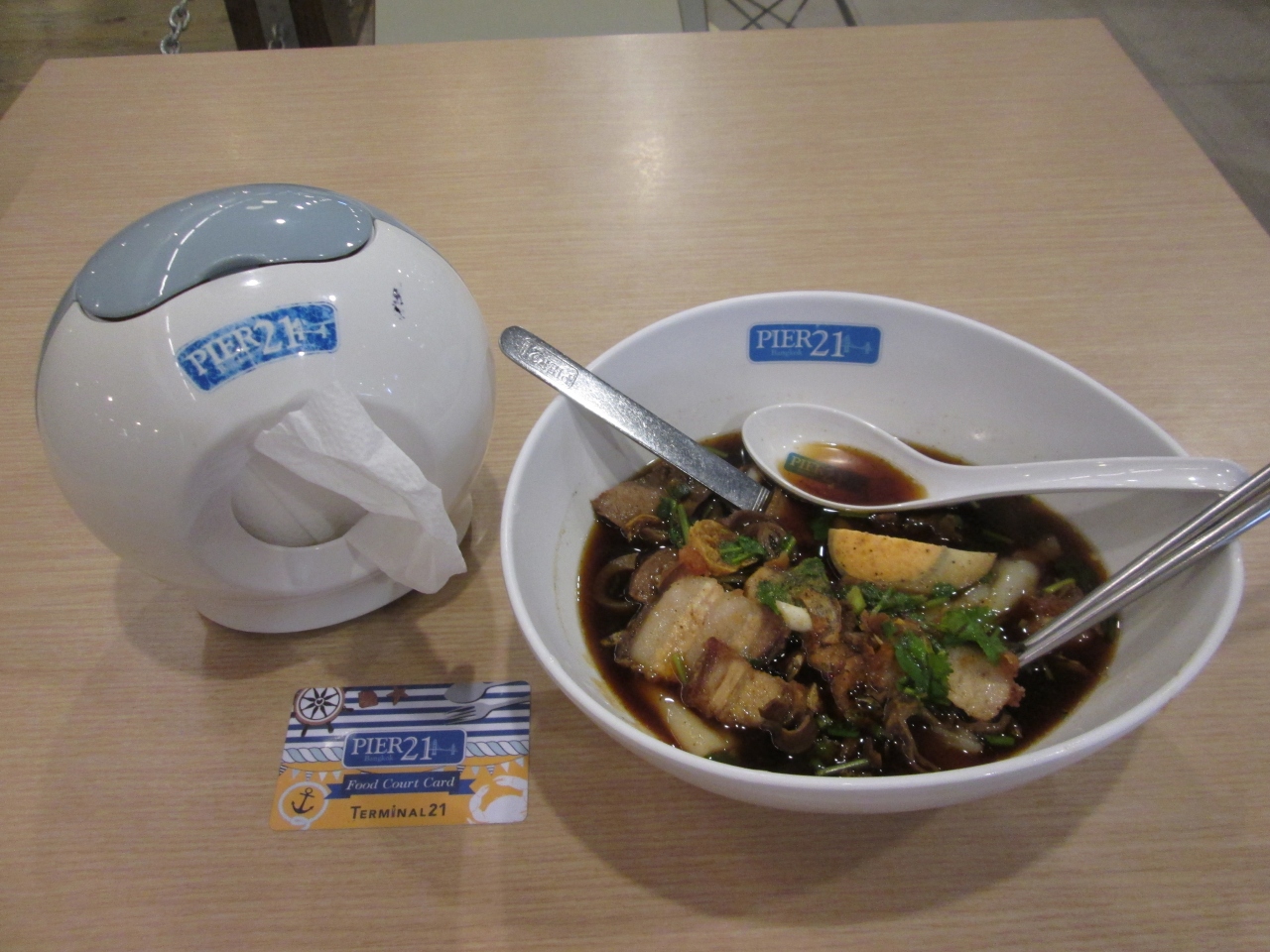 きれいなフードコートで気軽に利用できます。また、座席数が多く落ち着けます。小腹が空いていたので豚の肉と肝などがたっぷり入った麺を食べました。1杯25バーツでした。高いものでも50バーツ前後でした。安くておいしいフードコートです。