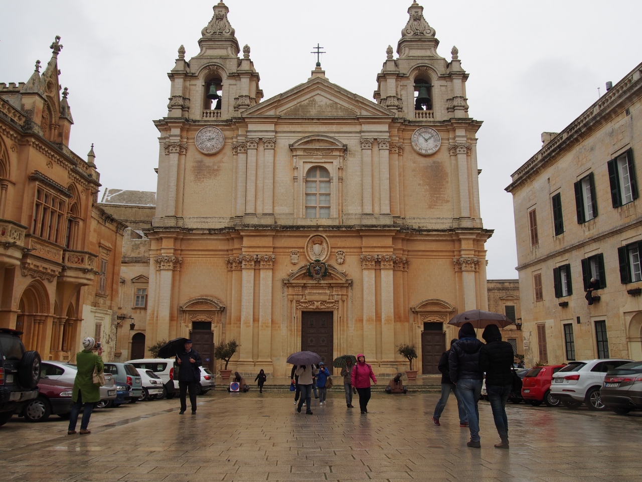 広場の奥に2つの鐘楼をもつバロック様式の建物です。