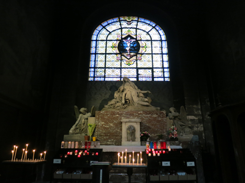 映画「ダ・ヴィンチ・コード」に出てきたそうですが、まったく覚えていなくて、映画を見返してから行けば良かったと思いました。また、中央の祭壇のピエタ像には、聖母マリアだけでなくマグダラのマリアも彫りこまれているそうです。そんな事も帰国してから知ったことで、せっかく行ったのにもったいないことをしたと後悔しました。この教会に行く際は、いろいろ下調べをしておくと良いと思います。