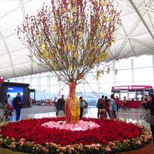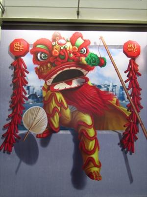ゲートに向かう途中、赤やピンクの花が飾られていたり、駒のオブジェがあったり、ゲートの看板の上に獅子がいたり!!と旧正月の雰囲気満点でした。