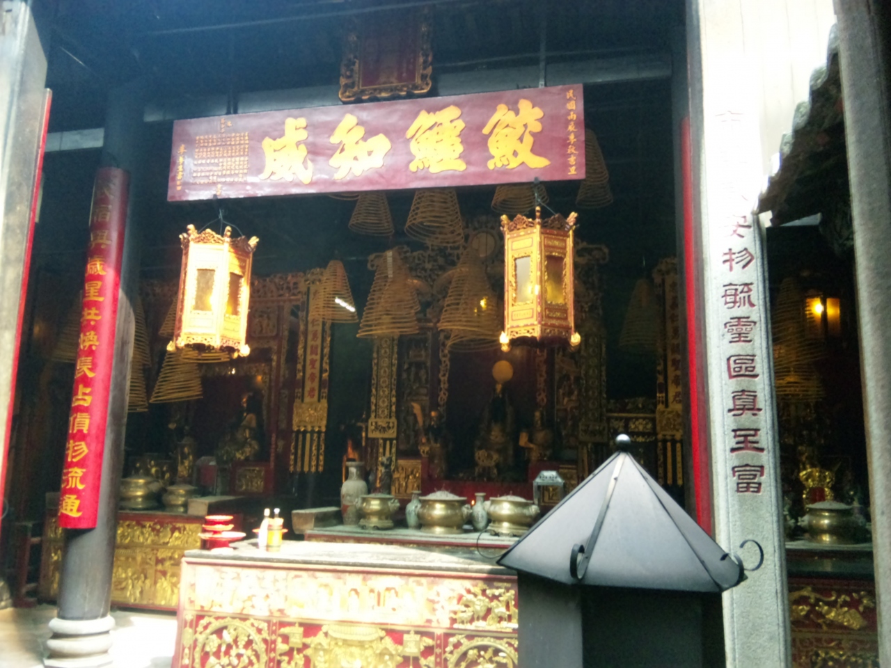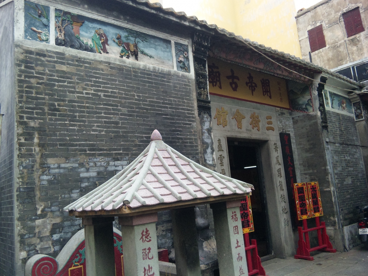 セナド広場にあるマカオ政府観光局の裏手あたりにあります。露店も周りに結構出ているので、セナド広場から数分もかからない道程ですがなかなか楽しいです。もともとはマカオの商工会議所みたいなところだったようですが、今は関帝廟だけが残っているそうです。ほんとに小さい御廟なので見学は数分で済むでしょう。