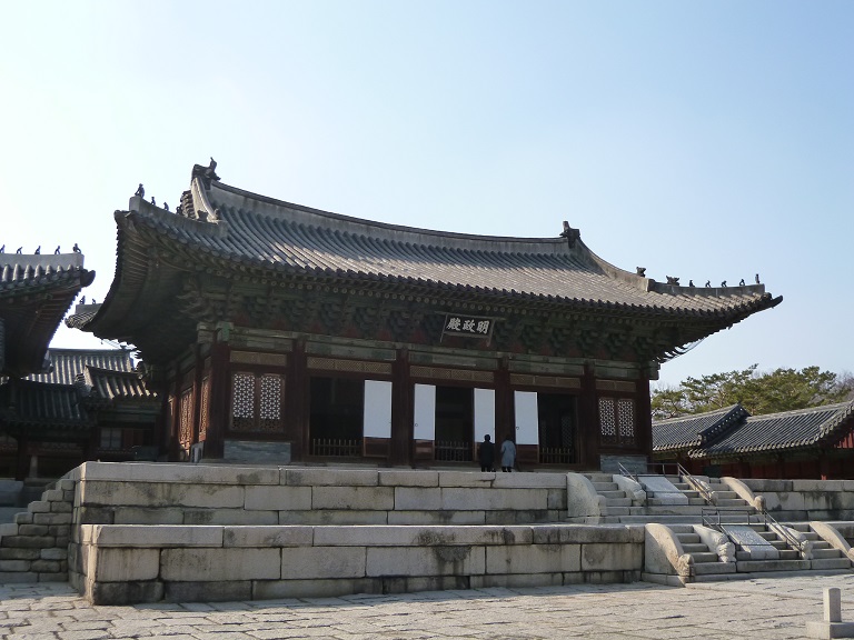 1483年に創建され、王の即位式など公の行事に使われていました。ここも豊臣秀吉の朝鮮出兵の際に消失し、1616年に再建されました。国宝226号の指定を受けており、ソウルの古宮の正殿の中では、最も古いそうです。また天井には美しい鳳凰が描かれていますので、お見逃しなく。