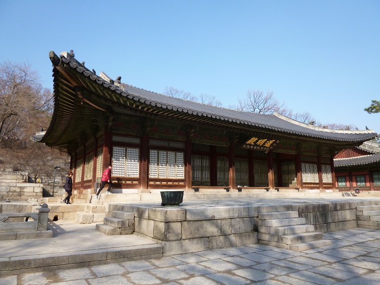 昌徳宮のもっとも奥まった所にある、内殿の建物の一つです。非常に大きく且つ優美な建築です。この建物の西には昌徳宮への入口があり、ここを通り抜けると昌慶宮見学に引き続いて昌徳宮も見学できますので、非常に便利です。当然逆ルートもあり。
