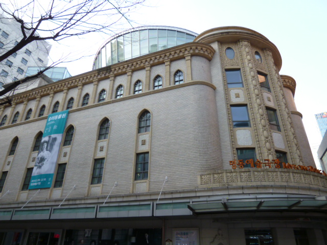 明洞の中心に鎮座している、他と異質な重厚な建築が明洞芸術劇場です。もともとは日本統治時代に建てられた明治座の建物で、文化駅ソウルなどと並んで、歴史を感じるスポットです。今では若者で賑わう明洞で、些かバツの悪さを感じているように見えるのは私だけでしょうか・・・。