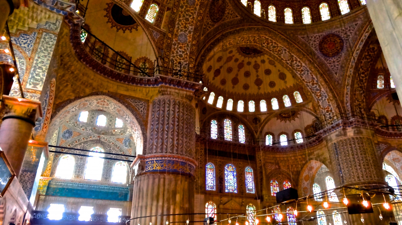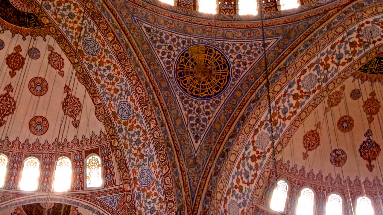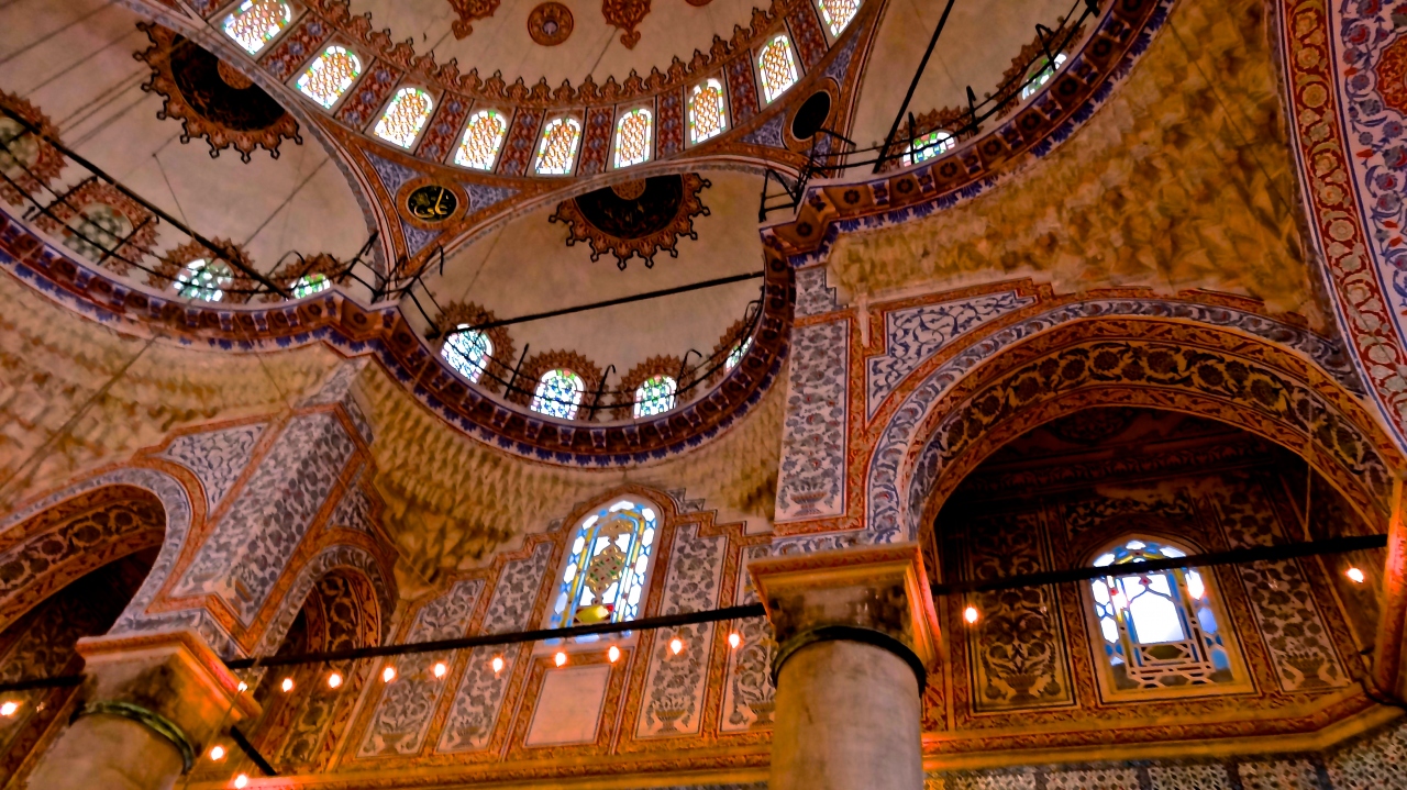 内壁を飾る21,000余枚のイズニックタイルは青を基調とした美しい色彩