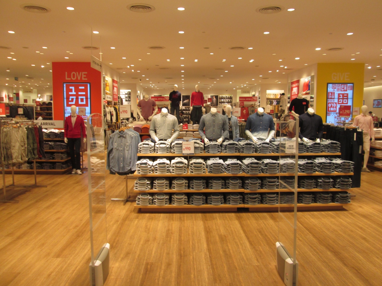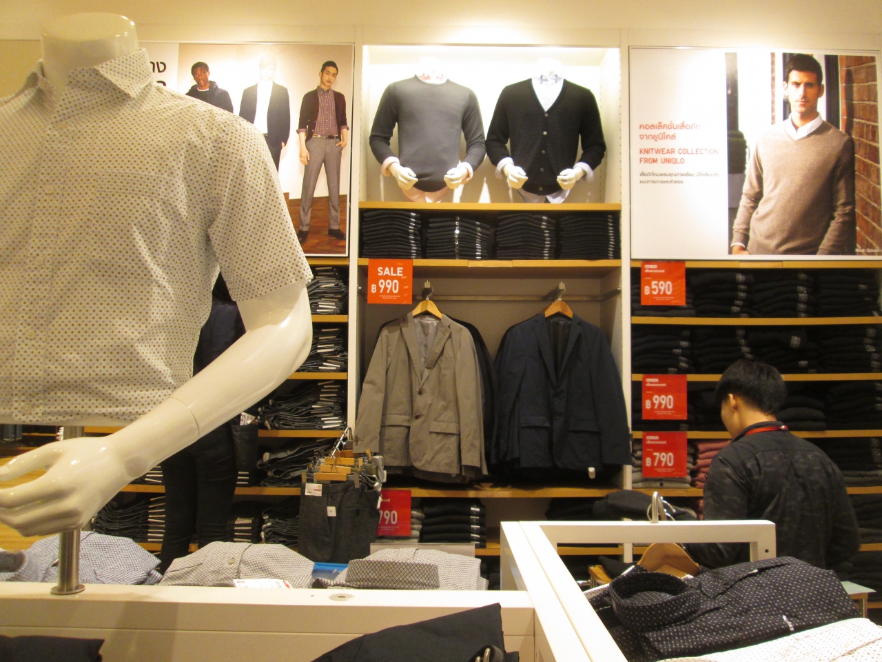 チットロムのセントラルワールドにもユニクロはありますが、サイアムパラゴンにあるユニクロは空いています。ショッピングセンター自体はセントラルワールドより圧倒的にサイアムパラゴンの方が混雑していますが、このユニクロは少し分かりづらい場所にあるからかもしれません。