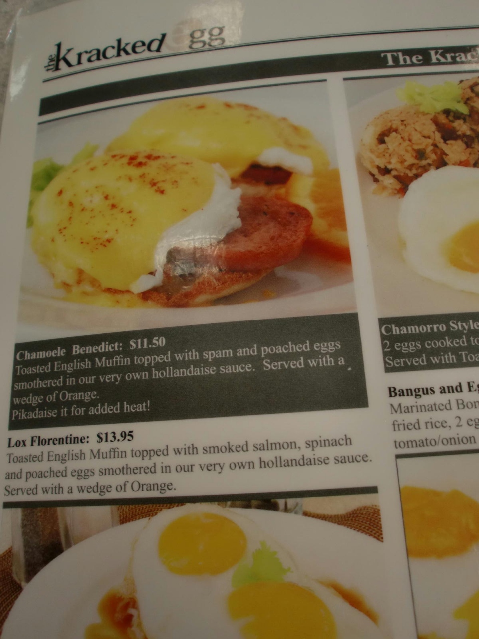 エッグベネディクトを食べました。マフィン生地にとろーり半熟卵、スパム、酸味のあるマヨネーズっぽいソース、チリパウダーがかかっています。