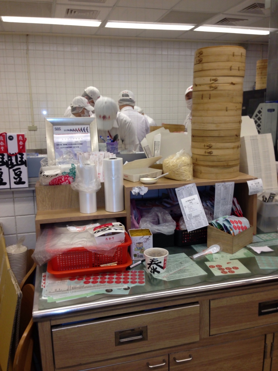 時間も昼時を外した14時過ぎだったので待ち時間もなくすぐに案内。ガラス張りになっている調理スペースにて小籠包を作っているのを横目に2階席へ。