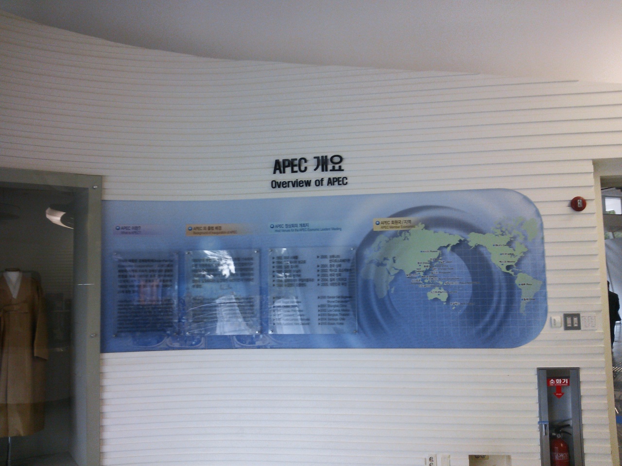 2005年にAPECが行われた場所です。会議場がその当時のまま残されています。当時の日本の首相は小泉純一郎さんで各国首脳と一緒に写られた写真も貼ってありました。その時出された食事もサンプルのように展示されてました。海にも近く散歩道になっています。