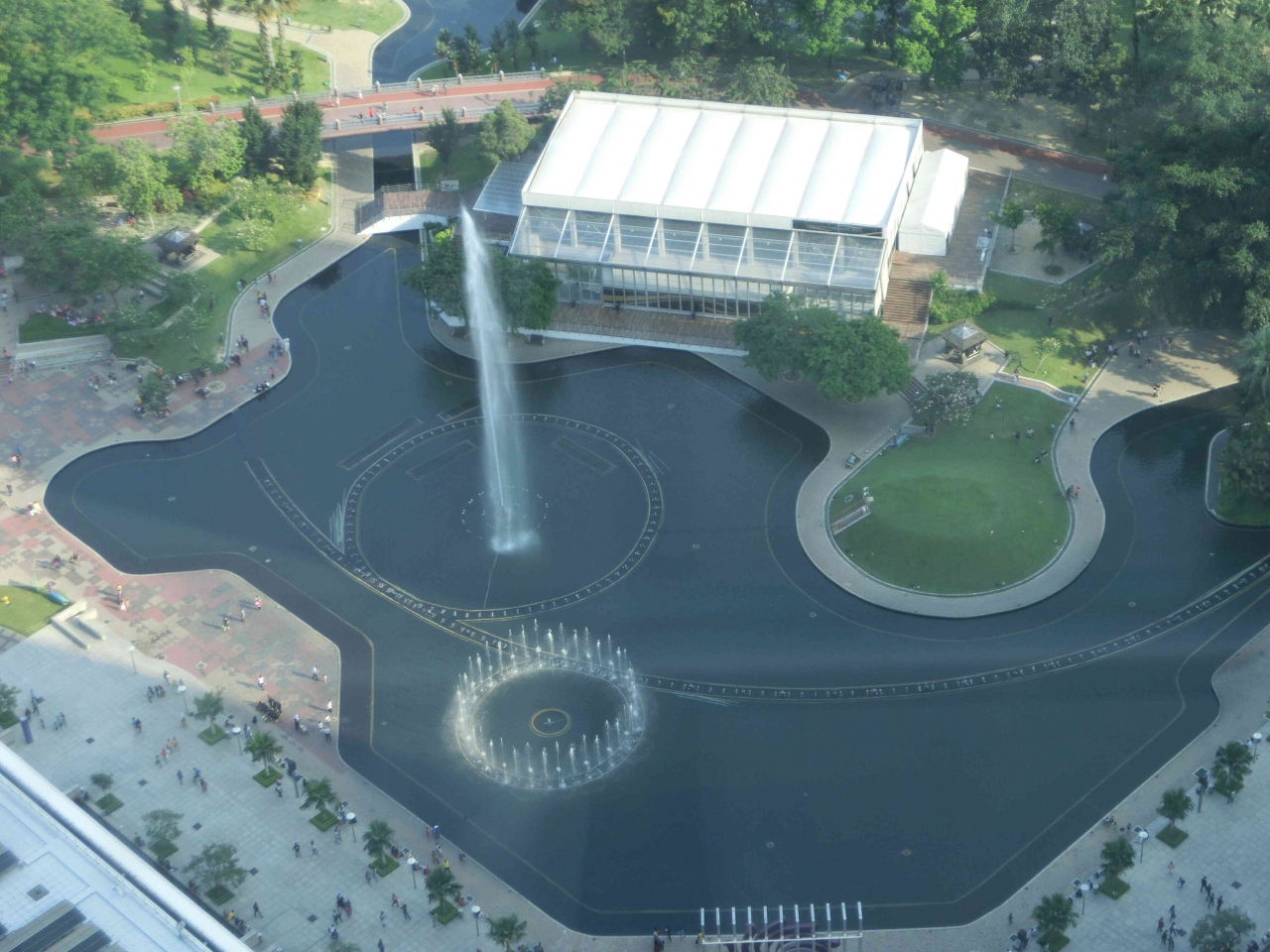 ペトロナスツインタワーに登ったら、直下に何やら大きな公園があるなと思い、噴水とか涼しそうで気になって、降りたら行ってみようと思いました。(あんまりガイドとか読んでなかったので、それがKLCC公園とは知らなかったのです。)