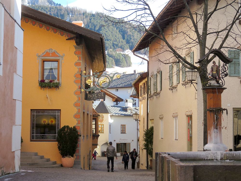 イタリアのボルツアーノ自治県に属し、ガルデナ谷の入り口にある小さな美しい村。村内にはかわいい教会が点在し、建物の壁には絵が描かれ、多くの観光客を魅了している。村からバスで10分ほど行くと、ドロミテの岩峰が素晴らしいシウジ高原へ上るテレキャビンがあるので、ハイキングやスキーの拠点として便利だ。ホテルも多く、ガルデナ谷のさらに奥にあるオルティセーやサンタクリスティーナに比べると安く泊まることができる。無料のスキーバスを利用して日帰りでセラロンダを滑ることも不可能ではない。ボルツァーノやブレッサノーネからバス便があり、1時間ほどで行くことができる。