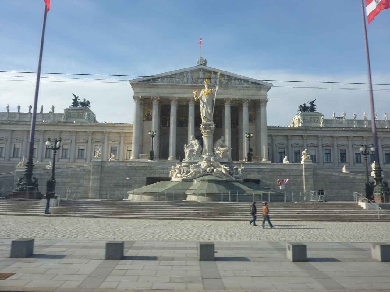 リンク周回時に見られるヘレニズム風古典様式の建物で、正面には古代ギリシャの神殿を思わせるコリント風の8本の柱が聳えています。正面のパラス・アテナの泉と呼ばれる噴水にはアテナの彫像が立っています。