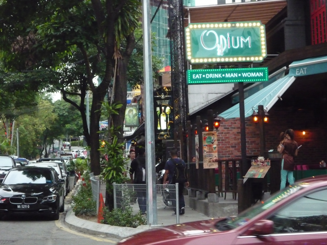 ブッキビンタンからジャランアローに向いて歩いて行きます。そしてジャランアローを曲がらずに行く道沿いがナイトスポットのチャンカット ブキビンタンです。たくさんのバーやレストランが続いていました。お客さんは中華系のマレー人はいるかもしれませんがマレーシア人以外が多いと思います。夜中まで人が途切れずにいますから歩くのには安全でした。客引きはたくさんいましたが、服装からか声もかけられませんでした。おそらく明らかにお金を使いそうな外国人だ、、と判定されなければ普通に歩けると思います。昼間はそれほど賑やかではないですが、夜はとても賑やかです。