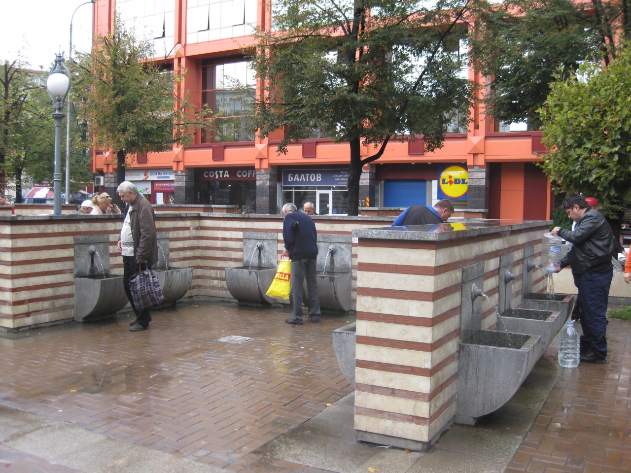 現在も地下から温泉がわいており、多くの市民が温泉水をくみに
