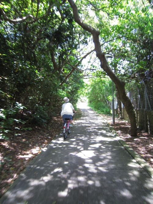 お天気の良い6月の週末、青空が気持ちよかったです。最初のうちは島の埠頭あたりを散策していたのですが、暑すぎたので、レンタサイクルやさんを見つけて、サイクリングをしてみました。坂道も多いですが、割と走りやすいところでした。何よりも、海から吹いてくる風が気持ちよかったです。1時間で15HKドル。2時間利用しました。