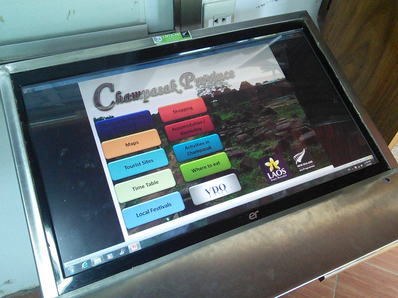 1番の目玉はタッチパネルの案内機です。バスの時刻やホテル、レストラン、ショップの情報まで操作して見るとこができます。また英語が話せる人がいるのでいろいろ質問もできます。なかなかラオスしっかりしてます。観光客のために労力を注いでくれていてうれしくなります。