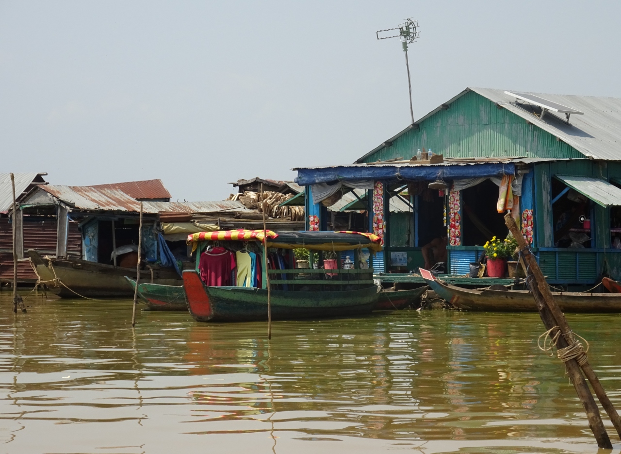 船で15分~20分程で水上生活達の住む集落にたどり着けます。湖上の集落には、1万人ほどが生活していて、こういった集落がトンレサップ湖全体に100以上あるとのこと。