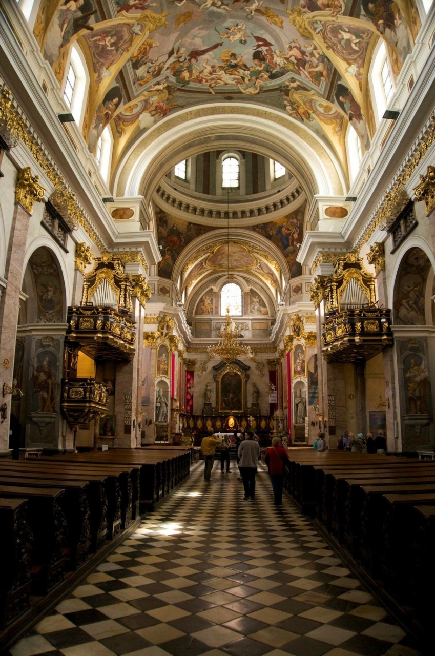 リュブリャナの中央青果市場にほど近い教会です。オーストリアを回ったあとスロベニアを観光したのでスロベニアの教会や建築物はそれほど荘厳さや派手さを感じなかったのですが、こちらの教会は特に祭壇や内部の装飾が繊細に施されておりとても見応えがありました。
