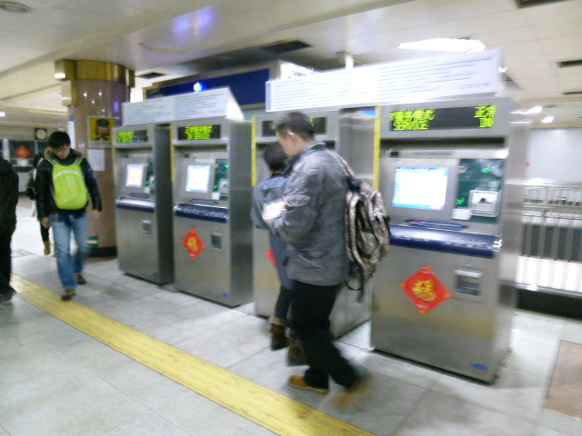 地下鉄1号線に乗って、天安門広場をぐるーと周ってここ「天安門西駅」から乗車し宿に戻ります。チケットの購入方法は韓国と変わりませんね。モニターで操作します。大勢の観光客が乗り降りしています。駅構内へは手荷物検査必須です-。エレベータやエスカレーターがないので身体の不自由な方はちょっときついですね。中国も高齢化社会を迎えると言うのに、整備が必要です。