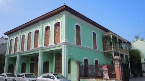 ペパーミントグリーンの建物は、中国系の富豪・チュンケンキーの住居として19世紀末に建てられたもので、プラナカン様式の屋敷そのものが豪奢な展示物になっています。