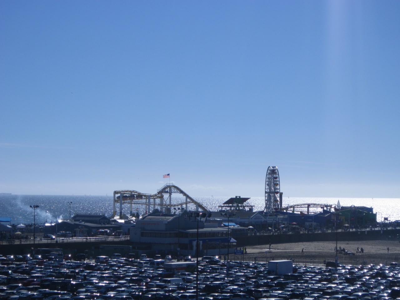 サンタモニカビーチは夏になると凄まじい人で溢れます。ビーチの臨時駐車場も車で埋め尽くされまます。