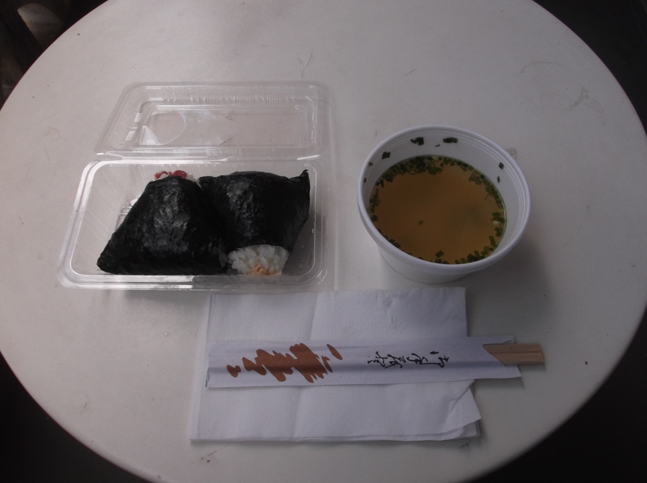 おにぎり2個とお味噌汁のセットを注文。味は悪くなかったのですが、これだけで5ドルは高い!