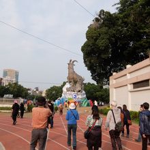 台中駅から、割合近くの市内の真ん中に位置する公園である。市民の憩いの場所でもある。旧正月を祝いひつじ年のモチーフが作られていた。広場には、飾り付けがされており、真ん中の散策路と池があり、落ち着いた雰囲気の公園であった。