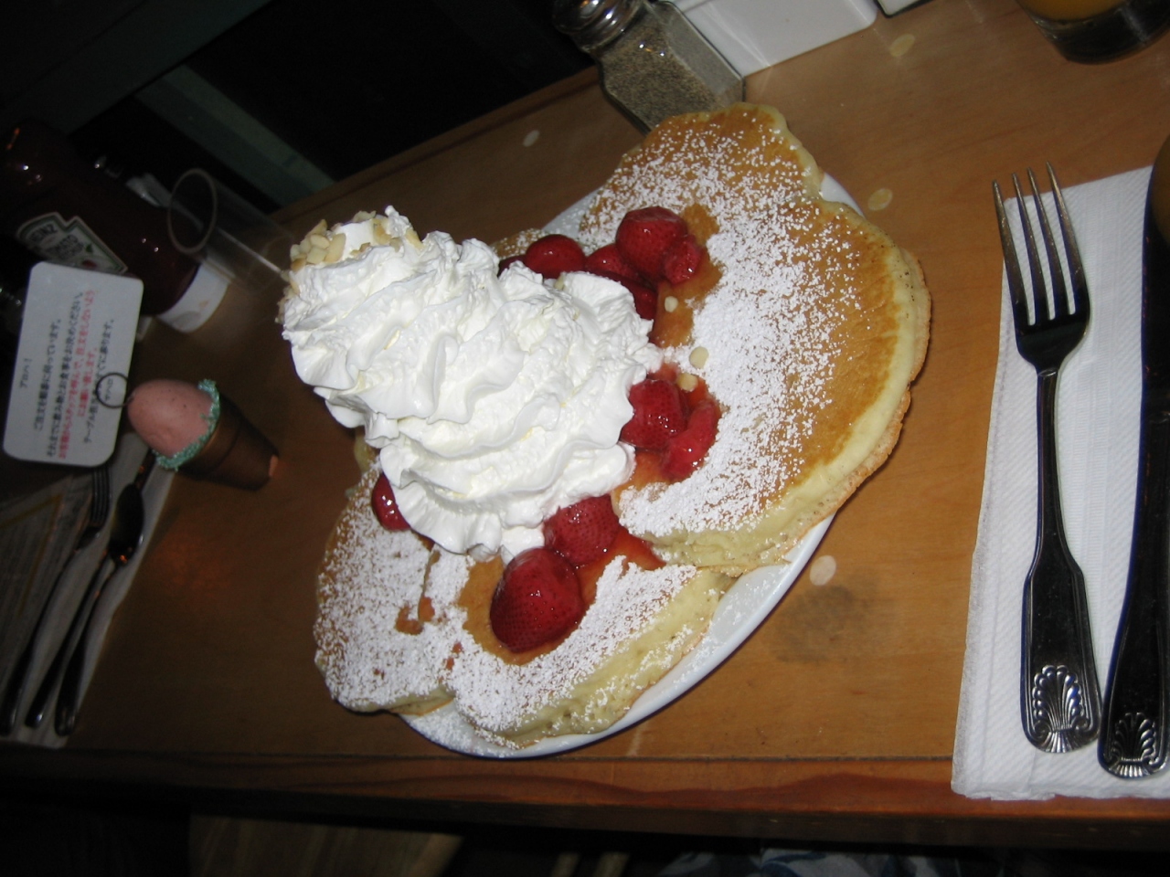 たまたま5時ぐらいに行ったら並ばずに中に入れました。パンケーキとオムレツを注文しました。パンケーキは、とても大きく何よりもクリームの量がものすごく、あまり得意じゃない人にはきついかなと思います。2人でパンケーキにしないで良かったです。