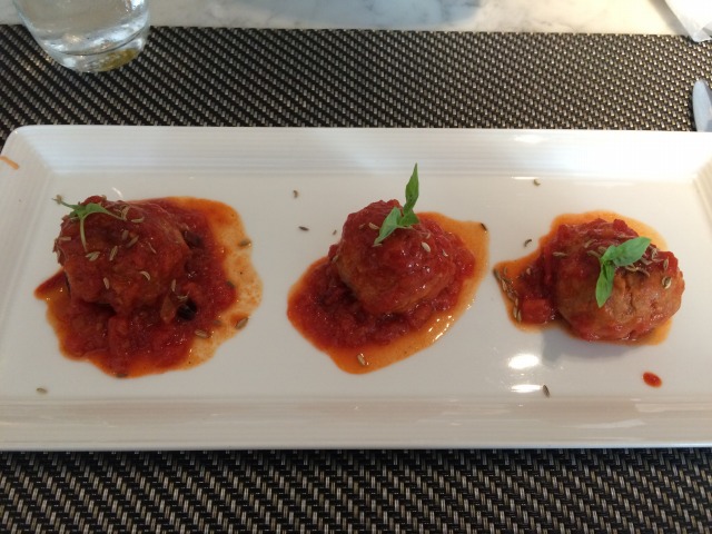 私が頼んだのは前菜にポークミートボールのトマトソース、メインにボロネーズパスタ。