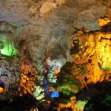 ハノイからの日帰りハロン湾ツアーに組み込まれていました。下船して中に入った洞窟内には、たくさんの鍾乳洞があり、色とりどりのライトアップがされていて、とても幻想的でした。自然の偉大さに触れた時間となりました。