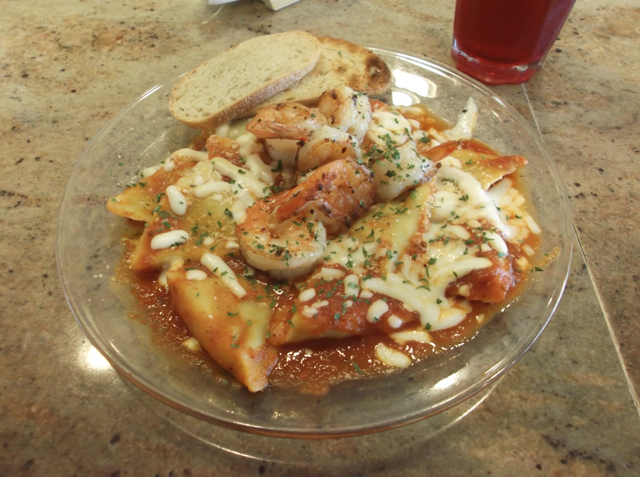 カフェカイラと言えば、フルーツパンケーキがあまりにも有名ですが、初日はがっつり食事をしたい気分だったので、ラビオリを注文しました。プリップリの海老がごろごろ入ったラビオリはガーリックが程良く効いて美味しかった。