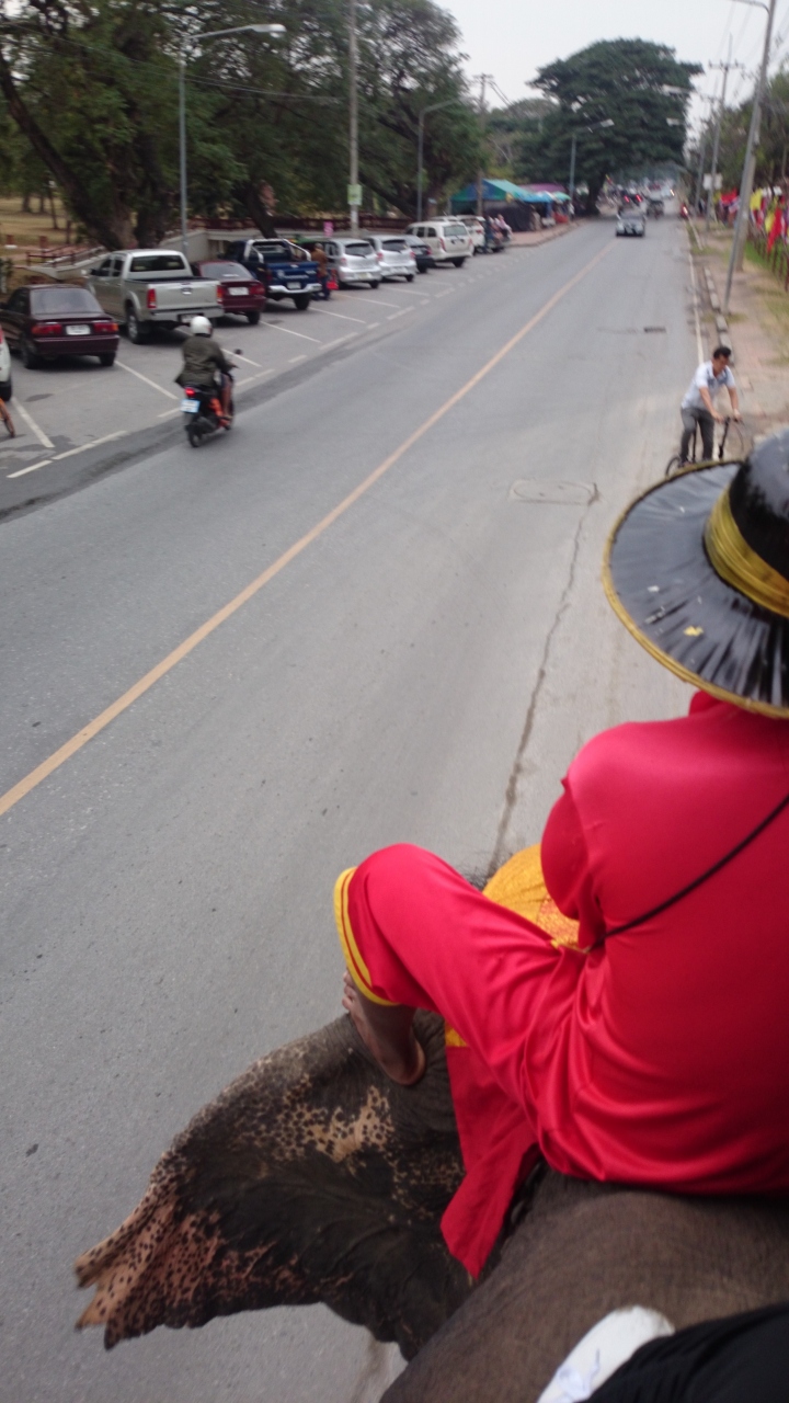 写真のとおり、帰りは車が通っている道の脇を通ります。象に乗る体験をできる機会はなかなかないので、一度は体験してみるのも良いかと思います。
