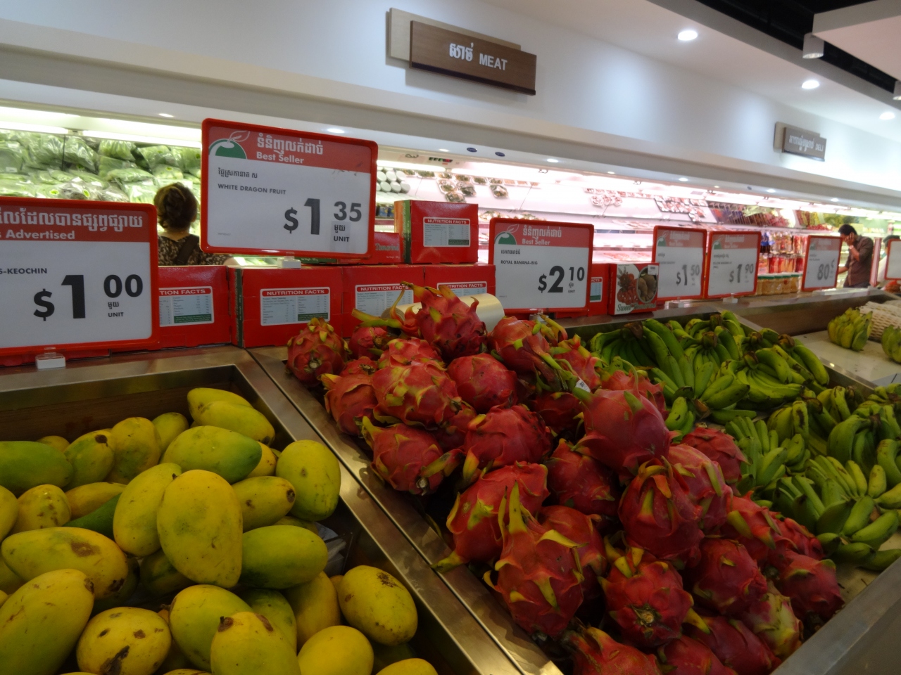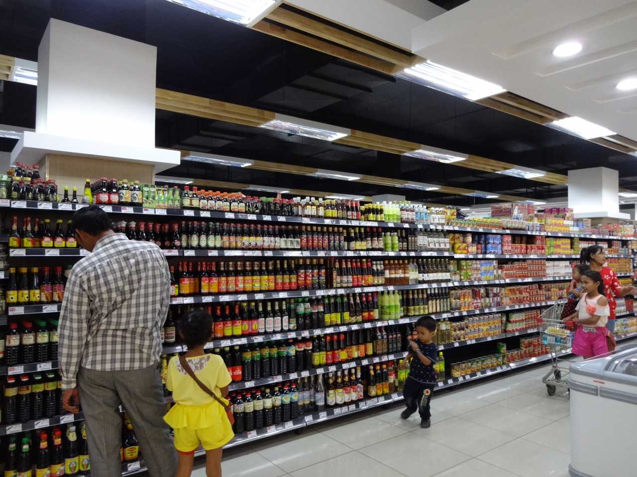 ホテル~直ぐの所にあった、シェムリアップ1のショッピングセンター。1Fにあるスーパーには、滞在中は毎日お世話になりました。飲み物やお菓子、バラマキ土産に至るまで相場を知るには最適でした。併設されているパン屋さんは、20時10分を過ぎると安売りをするようです。デニッシュ類は日本と変わらず、柔らかくて美味しいです。