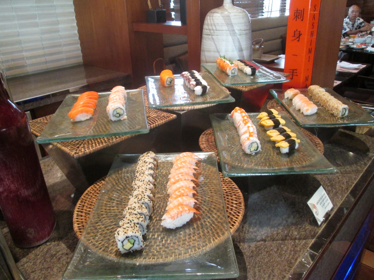 寿司があり、いか、貝類、タコ、マグロ。サーモンがありましたが、刺身で提供しているのはサーモンとマグロだけということで、タコなどを刺身として食べることは叶いませんでした。(ちょっと残念)